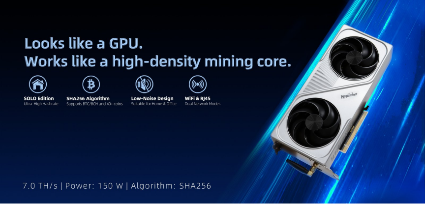 The BG02, meanwhile, incorporates a GPU-style design but functions solely as a mining rig rather than a graphics card. Installed in a PC case like a standard GPU, it combines a distinctive appearance with a seamless, user-friendly home mining experience.